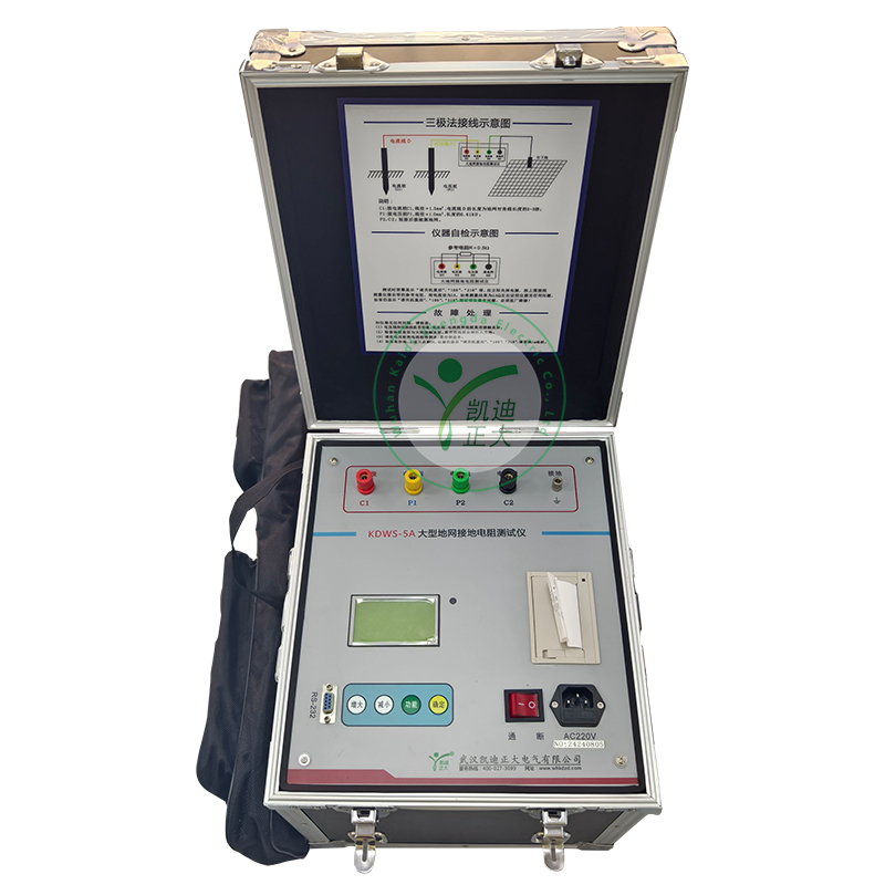 KDWS-5A型大型地網(wǎng)接地電阻測試儀,可測變電站地網(wǎng)(4Ω)、水火電廠、微波站(10Ω)、避雷針(10Ω)多用機(jī)型,采用了新型變頻交流電源,并采用了微機(jī)處理控制和信號處理等措施,很好的解決了測試過程中的抗干擾問題,簡化了試驗(yàn)操作過程,提高了測試結(jié)果的精度和準(zhǔn)確性,大大降低了試驗(yàn)人員的勞動強(qiáng)度和試驗(yàn)成本。