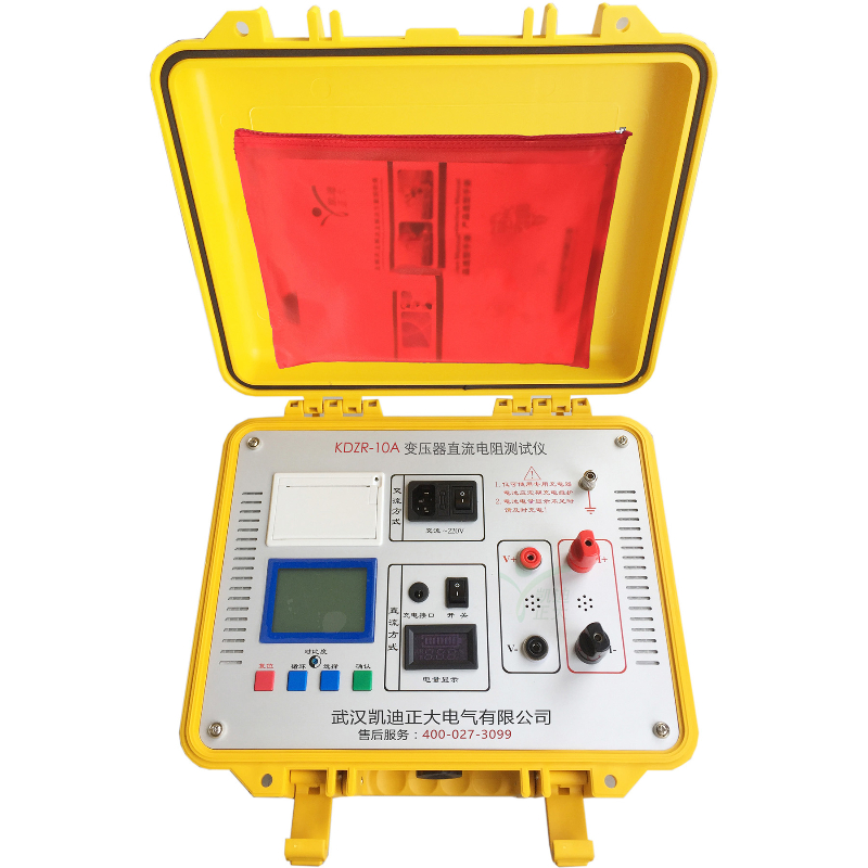 KDZR-10A變壓器直流電阻測(cè)試儀是變壓器、互感器、電抗器、電磁操作機(jī)構(gòu)等感性線圈制造中半成品、成品出廠試驗(yàn)、安裝、交接試驗(yàn)及電力部門預(yù)防性試驗(yàn)的必測(cè)項(xiàng)目,能有效發(fā)現(xiàn)感性線圈的選材、焊接、連接部位松動(dòng)、缺股、斷線等制造缺陷和運(yùn)行后存在的隱患。為了滿足感性線圈直流電阻快速測(cè)量的需要,武漢凱迪正大電氣有限公司利用自身技術(shù)優(yōu)勢(shì)研制了KDZR-10A變壓器直流電阻測(cè)試儀采用全新電源技術(shù),具有體積小、重量輕、輸出電流大、量程寬、數(shù)字顯示、內(nèi)部鋰電池供電等特點(diǎn)。整機(jī)由單片機(jī)控制,自動(dòng)完成自檢、數(shù)據(jù)處理、顯示等功能,具有自動(dòng)放電和放電指示功能。儀器測(cè)試精度高,操作簡(jiǎn)便,可實(shí)現(xiàn)直阻的快速測(cè)量。