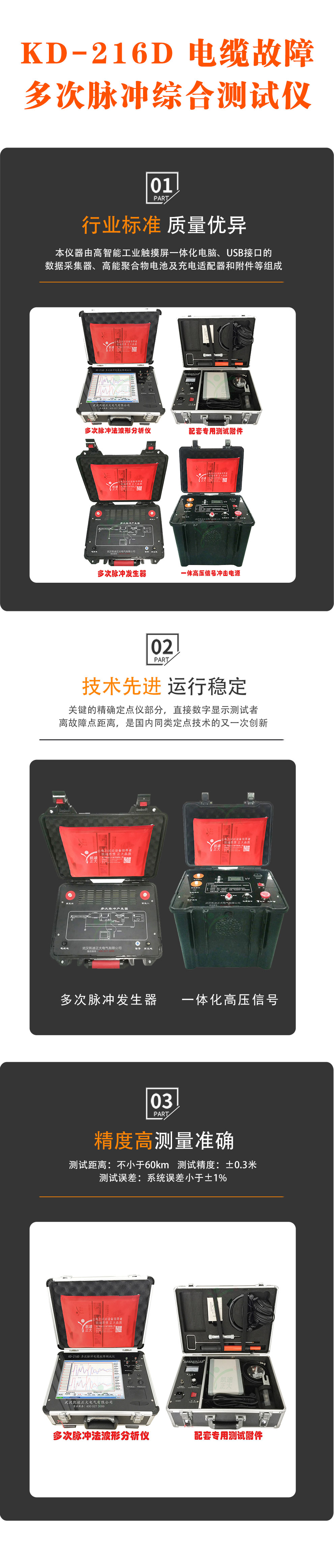 KD-216D電纜故障多次脈沖綜合測試儀是迎合工業(yè)級(jí)電力行業(yè)方案和IT時(shí)代的快速發(fā)展,將原來電纜故障測試儀的局限性,用工控嵌入式計(jì)算機(jī)平臺(tái)系統(tǒng)、網(wǎng)絡(luò)服務(wù)業(yè)務(wù)、USB通信技術(shù)系統(tǒng)化,很大提高了儀器的使用功能和利用價(jià)值以及便捷的現(xiàn)場環(huán)境操作。特別對(duì)于日益增多的地埋電纜資料提供了一套少有的管理軟件。整套系統(tǒng)滿足中華人民共和國電力行業(yè)標(biāo)準(zhǔn)《DL/T849.1~DL/T849.3-2004》電力設(shè)備專用測試儀器通用技術(shù)條件,該系統(tǒng)測試由系統(tǒng)主機(jī)和故障定位儀以及電纜路徑儀三部分組成,用于電力電纜各類故障的測試,電纜路徑、電纜埋設(shè)深度的尋測和電纜檔案資料的日常維護(hù)管理,以及鐵路、機(jī)場信號(hào)控制電纜、和路燈電纜故障的精確測試。