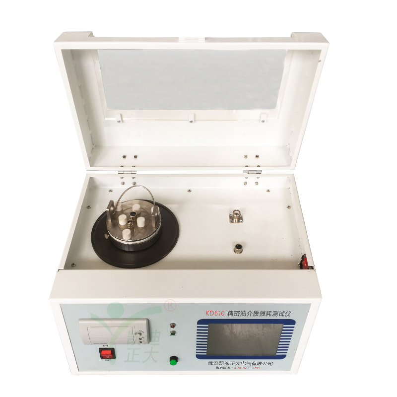 KD610精密油介質(zhì)損耗測試儀是用于絕緣油等液體絕緣介質(zhì)的介質(zhì)損耗角及體積電阻率測試的一體化結(jié)構(gòu)的高精密儀器。內(nèi)部集成了介損油杯、溫控儀、溫度傳感器、介損測試電橋、交流試驗電源、標準電容器、高阻計、直流高壓源等主要部件。其中加熱部分采用了當前最為先進的高頻感應加熱方式,該加熱方式具備油杯與加熱體非接觸、加熱均勻、速度快、控制方便等優(yōu)點。交流試驗電源采用AC-DC-AC轉(zhuǎn)換方式,有效避免市電電壓及頻率波動對介損測試準確性影響,即便是發(fā)電機發(fā)電,該儀器也能正確運行。內(nèi)部標準電容器為SF6充氣三極式電容,該電容的介損及電容量不受環(huán)境溫度、濕度等影響,保證儀器長時間使用后仍然精度一致。