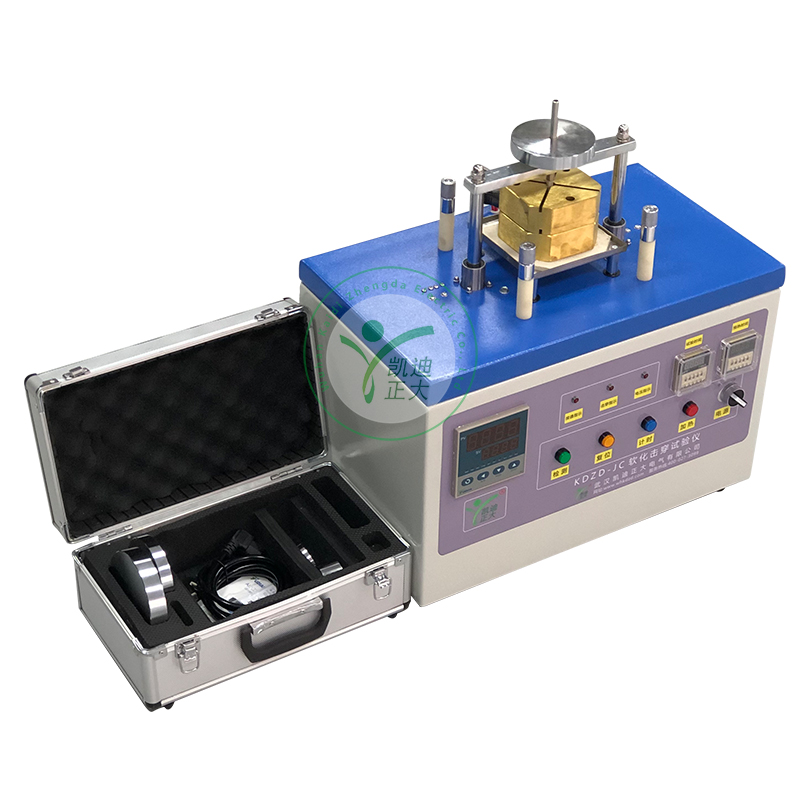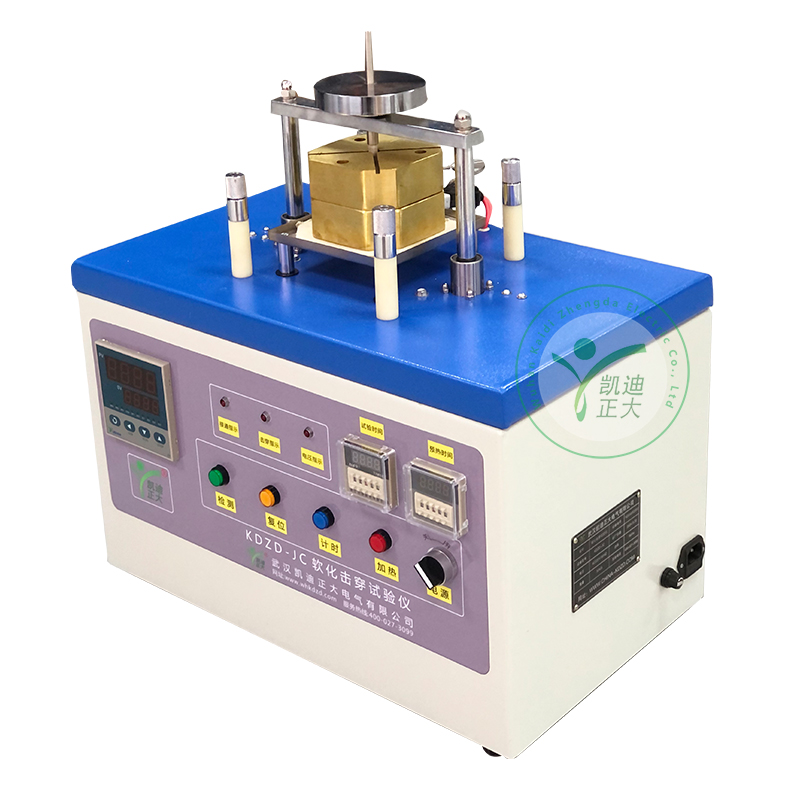 KDZD-JC軟化擊穿試驗儀用于檢測3.00mm及以下漆包線在熱狀態(tài)下漆膜軟化后的絕緣性能,根據(jù)設定的預熱溫度、試驗時間、儀器自動完成對試樣的預加熱、加負荷、加試驗電壓,達到試驗時間或試樣被擊穿時即卸負荷,發(fā)出聲光信號。該儀器采用熱電偶測溫,智能溫度控制,能自動調(diào)節(jié)和顯示試驗溫度、測試部分采用集成電路,整個測試過程自動完成。