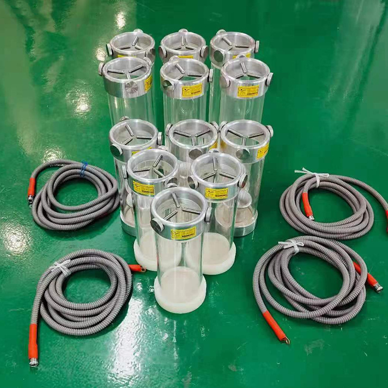 目前電纜廠均擁有多條 XLPE 生產(chǎn)線,但只有一套局部放電檢測(cè)設(shè)備。若采用我公司的專用終端,和剝削工具。將使局放實(shí)驗(yàn)簡(jiǎn)單宣行,可將試驗(yàn)準(zhǔn)備工序時(shí)間減少一半,事半功倍。終端雖小,效益大!它是由有機(jī)玻璃管、電纜端頭固定法蘭、高壓屏蔽罩組成,整體為懸掛式。性能優(yōu),使用方便、安全可靠。