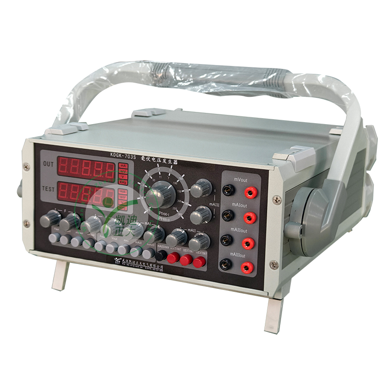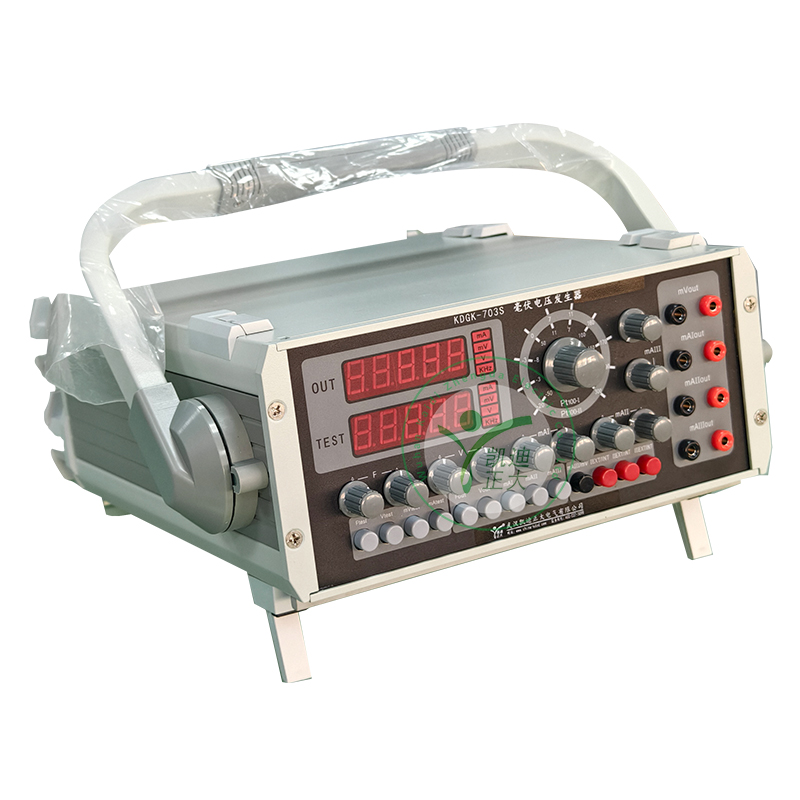 KDGK-703S便攜式綜合校驗(yàn)儀(毫伏發(fā)生器)是一種集數(shù)顯式電壓、電流、頻率標(biāo)準(zhǔn)信號源、Pt100 鉑電阻溫度模擬標(biāo)準(zhǔn)信號源、數(shù)字式電壓、電流、頻率測量功能于一體的高精度、高分辨率、多用途的自動化儀表校準(zhǔn)儀器。