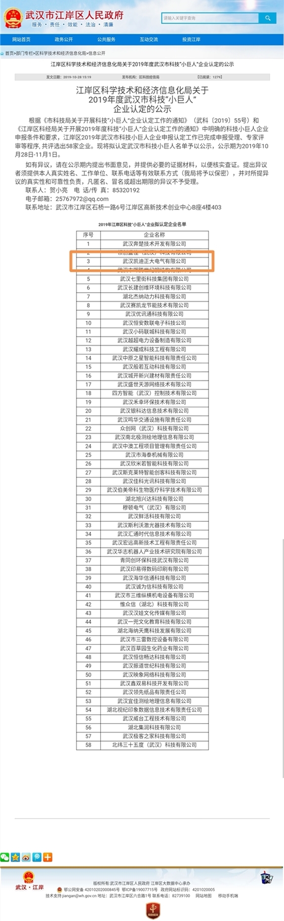 祝賀我司獲得江岸區(qū)科學(xué)技術(shù)和經(jīng)濟(jì)信息化局2019年度武漢市科技“小巨人”企業(yè)認(rèn)定