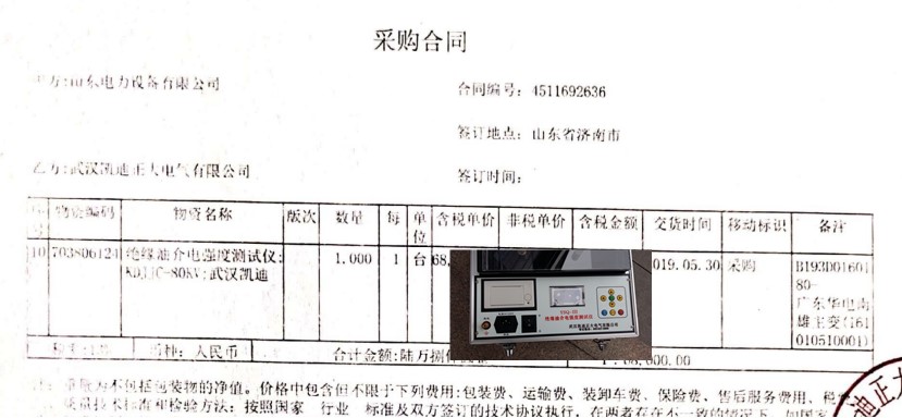 中國(guó)華電韶關(guān)熱電廠在2017年6月中旬招標(biāo)采購(gòu)電氣試驗(yàn)室設(shè)備一批,我司良好的口碑獲得中國(guó)華電廣東華電南雄主變(161010510001) 物資設(shè)備需求,驗(yàn)收主變性能需求絕緣油介電強(qiáng)度測(cè)試儀;KDJJC-80KV武漢凱迪,采購(gòu)合同編號(hào):4511892636.