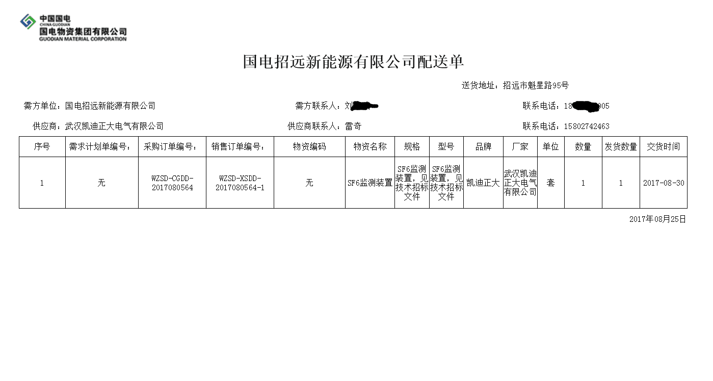 近期江城持續(xù)高溫,酷暑難耐。但絲毫沒有影響凱迪正大同仁的工作熱情,八月中旬,凱迪正大在國電招遠(yuǎn)新能源有限公司《35KV配電室加裝SF6監(jiān)測裝置項(xiàng)目》招標(biāo)采購中,憑借著良好的市場信譽(yù),可靠的產(chǎn)品質(zhì)量成功拿下此標(biāo)的。詢價單編號:WZSD-2017080285