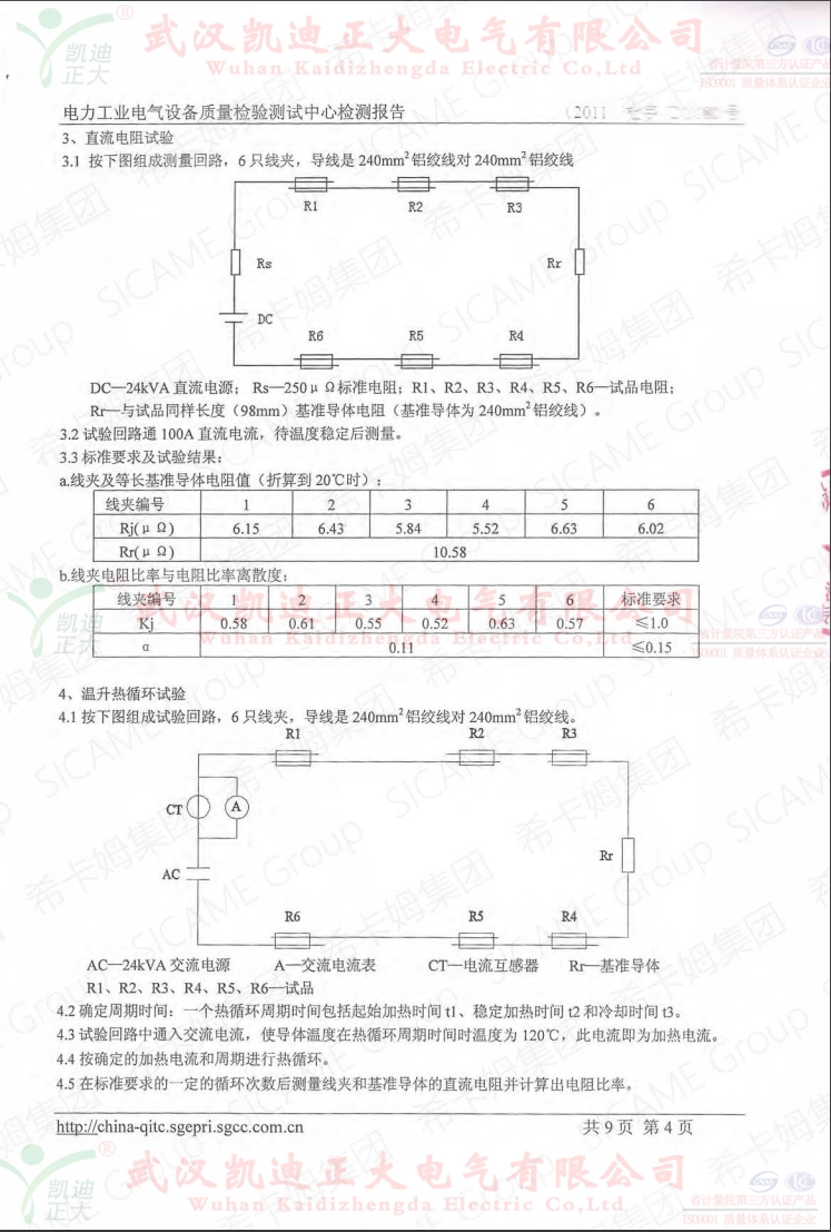 法國??芳瘓F(tuán)全資注冊的希瑪電力設(shè)備公司,2011年6月在武高所電力工業(yè)電氣設(shè)備質(zhì)量檢驗(yàn)測試中心檢定H型線夾。檢測結(jié)論:根據(jù)DL/T765.1-2001對(duì)?,旊娏υO(shè)備送檢的HC650型H形線夾進(jìn)行了尺寸和外觀檢查,結(jié)構(gòu)和組裝檢查,直流電阻試驗(yàn)、溫升試驗(yàn)、熱循環(huán)試驗(yàn)、短路電流試驗(yàn)和握力試驗(yàn),檢測項(xiàng)目合格。