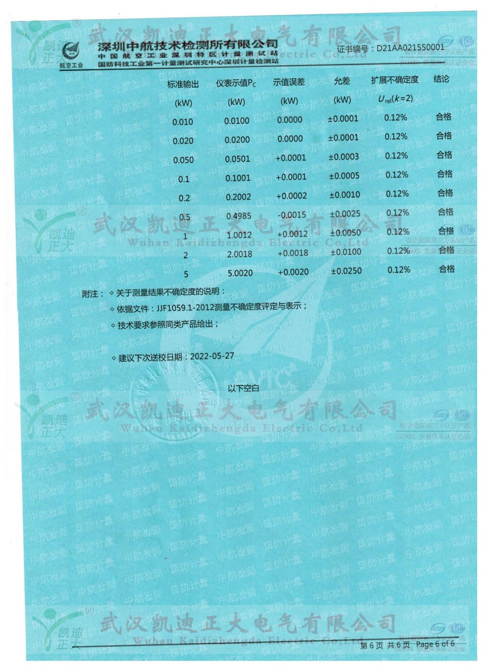 5月初,接市場部要求將KDBR-IV變壓器容量及特性測試儀送檢中國合格評定國家認可委員會(CNAS)深圳中航技術(shù)檢測所檢定,獲得校準合格證書。