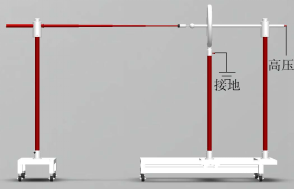 這里以35KV帶接觸電極延長的驗電器為例(注:做啟動電壓需配合升壓設(shè)備):首先將帶導軌的試驗平車上中間平車(安裝有均壓環(huán))移動標有a1430mm(紅色帶箭頭)位置,平車上的標尺與平臺上的標尺對齊。然后接好地線包括2平車底座、均壓環(huán)及升壓設(shè)備,將驗電器固定在小平車上,同時將驗電器抽出,然后移動小平車使得驗電器穿過均壓環(huán),且驗電器的金屬頭與均壓球接觸保持即可,將升壓設(shè)備的高壓導線接到均壓球延長桿上,再接升壓設(shè)備的其他導線,試驗人員撤離到安全區(qū)后合上電壓,將升壓設(shè)備均勻加壓知道驗電器發(fā)出報警,馬上停止加壓,此時記錄下高壓電壓數(shù)值,且比對數(shù)值是否落在35KV的15%~40%內(nèi)(5.25kv~14kv),是表明驗電器啟動電壓報警合格,否則此驗電器不合格。其它規(guī)格的驗電器啟動電壓也是如此,通過移動均壓環(huán)平車到指定位置即可。