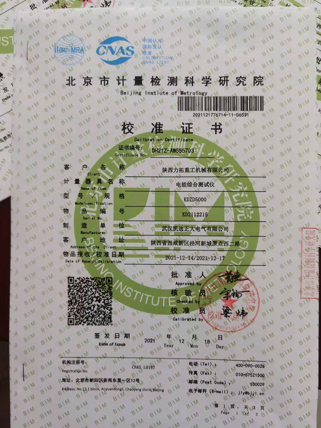 (校準(zhǔn)證書)