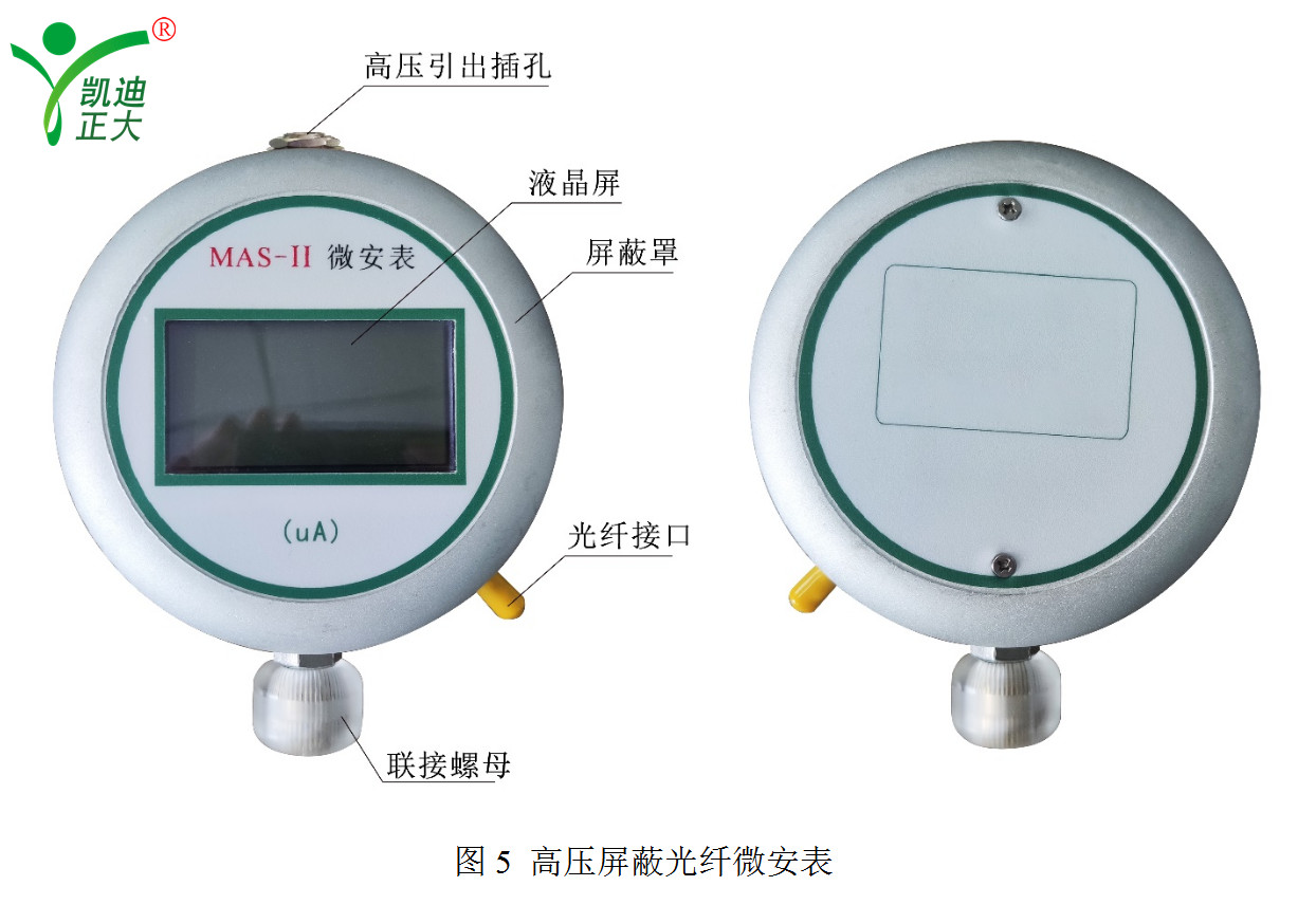 4.本表設(shè)有一個(gè)光纖接口,通過(guò)光纖可將微安表所測(cè)得的電流信息送給智能型直流試驗(yàn)器控制箱,以供顯示(系統(tǒng)設(shè)置中,選擇微安表,設(shè)置為[光纖])。