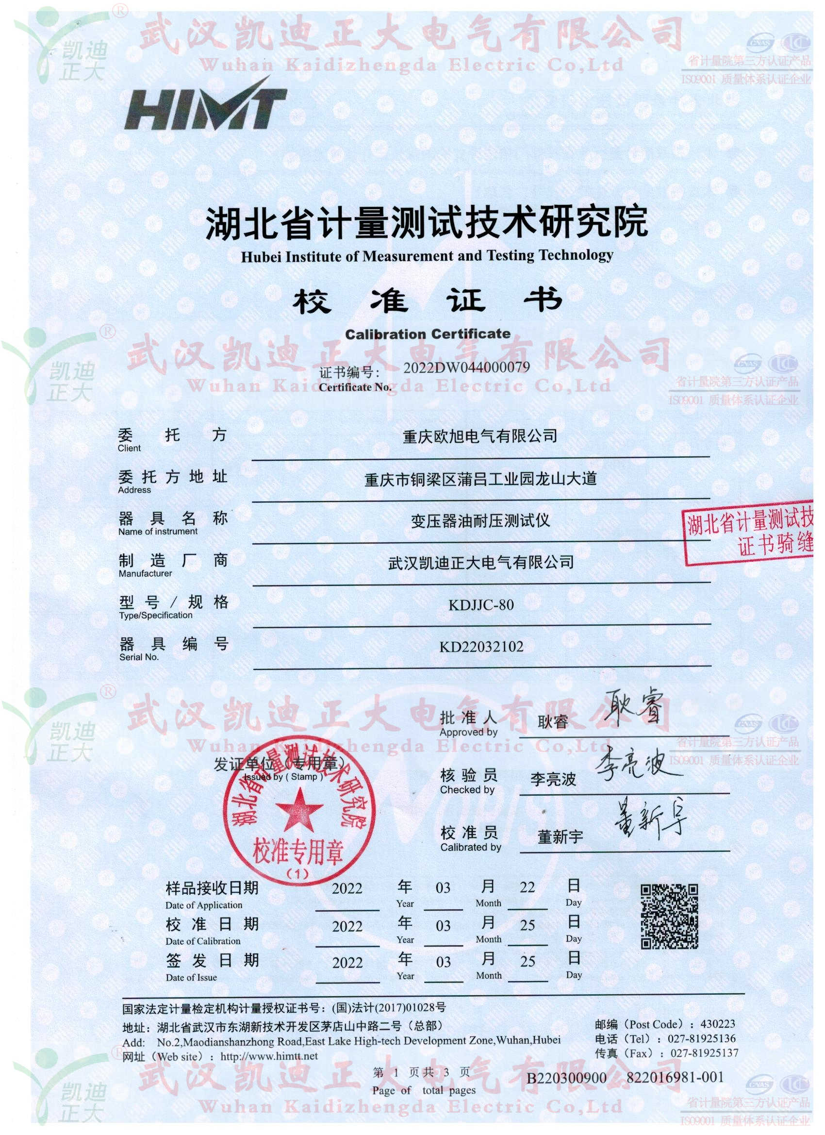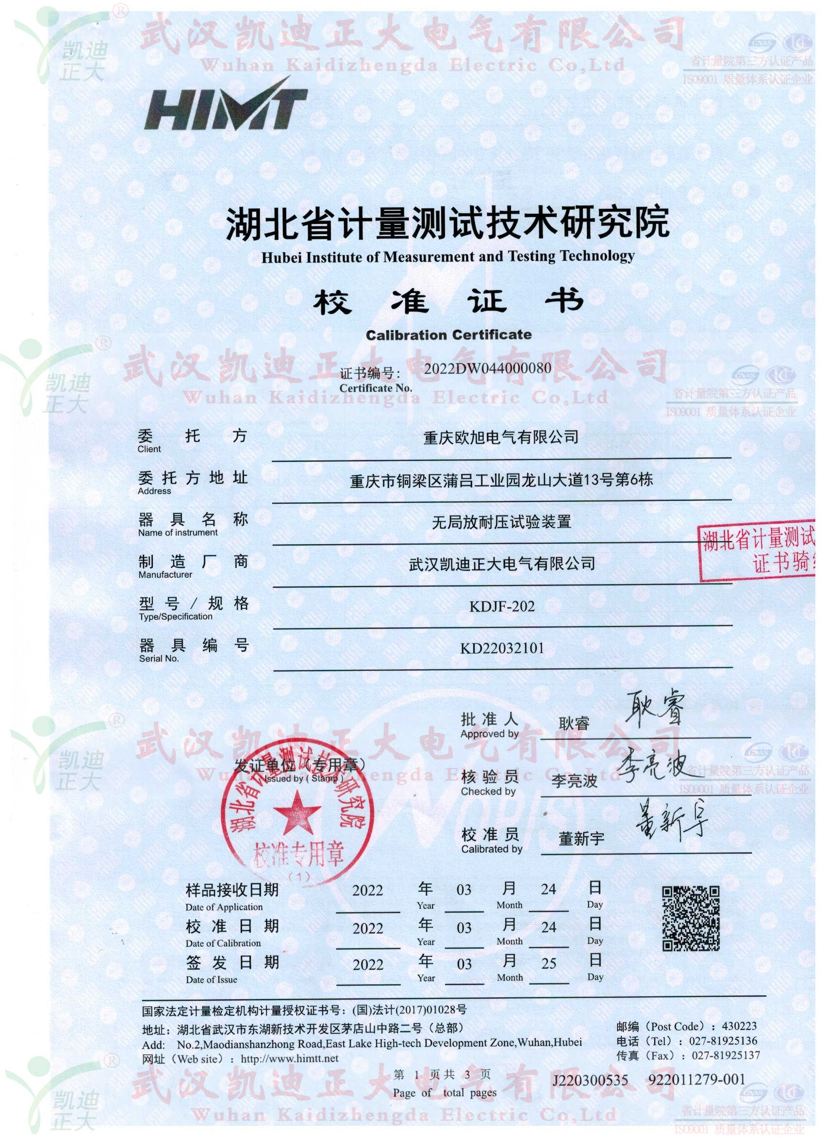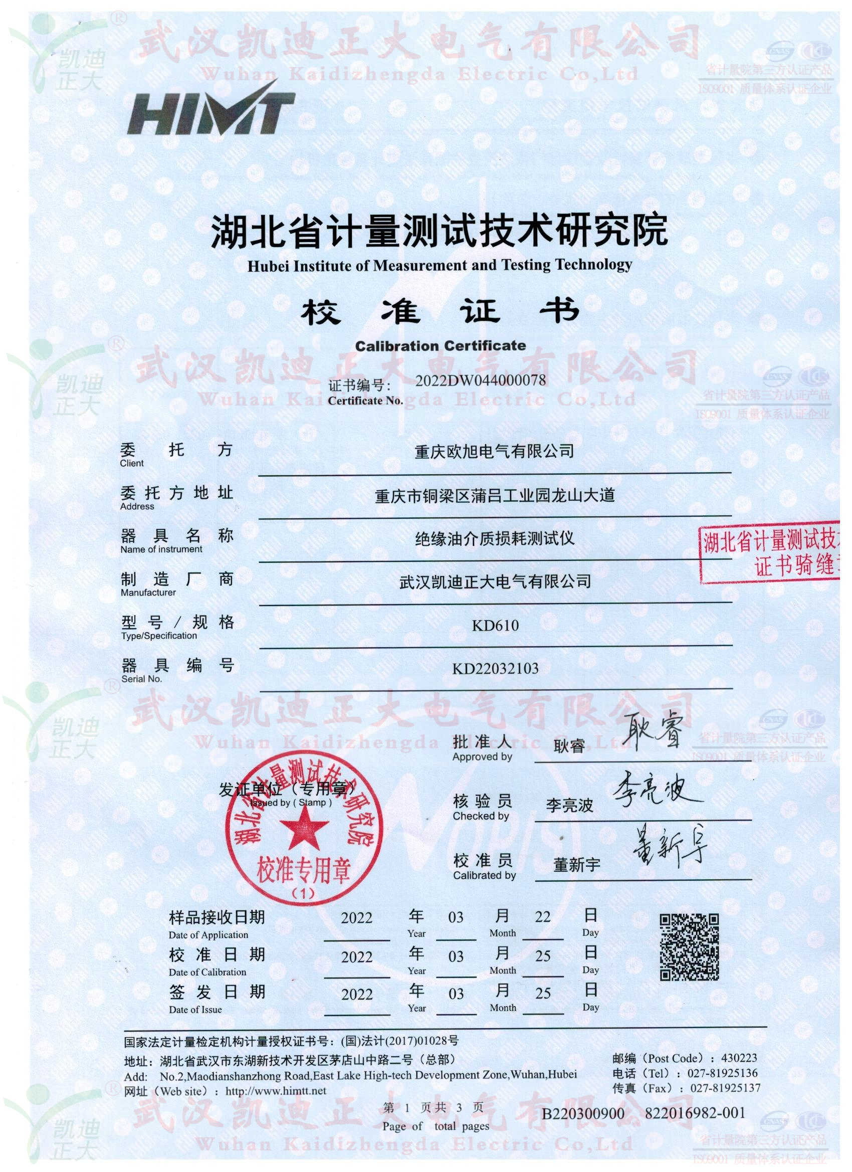 面對(duì)市場(chǎng)的優(yōu)劣淘汰趨勢(shì),國(guó)網(wǎng)電力公司、南網(wǎng)等各電力企業(yè)對(duì)高標(biāo)準(zhǔn)的節(jié)能變壓器有強(qiáng)烈需求。出廠檢測(cè)設(shè)備是歐旭公司申請(qǐng)資質(zhì)需要的設(shè)備,在國(guó)內(nèi)優(yōu)質(zhì)變壓器檢測(cè)設(shè)備公司對(duì)比后,選擇我司KDJJC-80變壓器油耐壓測(cè)試儀、KD610絕緣油介質(zhì)損耗測(cè)試儀、KDJF-202無(wú)局放耐壓試驗(yàn)裝置(10kVA/100kV)、KDZR-10A直流電阻測(cè)試儀等試驗(yàn)設(shè)備。驗(yàn)收標(biāo)準(zhǔn)已湖北省計(jì)量測(cè)試技術(shù)研究院校準(zhǔn)證書合格報(bào)告為基準(zhǔn),省計(jì)量院是政府計(jì)量行政管理部門依法設(shè)立的國(guó)家法定計(jì)量檢定機(jī)構(gòu)。校準(zhǔn)器溯源國(guó)家高電壓計(jì)量站(計(jì))字第2021042100號(hào)。