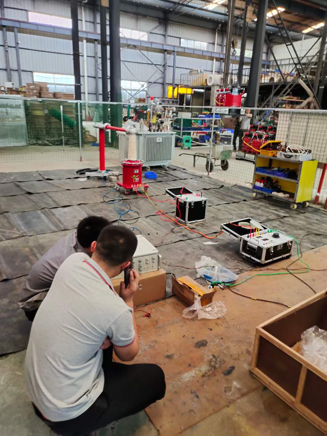 抵達(dá)現(xiàn)場后王工先與客戶細(xì)心講解了儀器的特點(diǎn)和使用方法,之后進(jìn)行測試前的設(shè)備線路連接和被試絕緣油樣品取樣工作。 王工在確認(rèn)各項(xiàng)準(zhǔn)備工作無誤后開始與客戶進(jìn)行絕緣油樣品測試,測試完成后進(jìn)行油介質(zhì)損耗測試。 在王工耐心的指導(dǎo)下,客戶完成了本次被試絕緣油樣品的油介電強(qiáng)度和油介質(zhì)損耗試驗(yàn)。然后進(jìn)行變壓器負(fù)載試驗(yàn)及無局放耐壓試驗(yàn)指導(dǎo),一直忙到晚上。最終,成功完成客戶的培訓(xùn)指導(dǎo)工作,客戶對(duì)此次技術(shù)指導(dǎo)培訓(xùn)工作非常滿意。